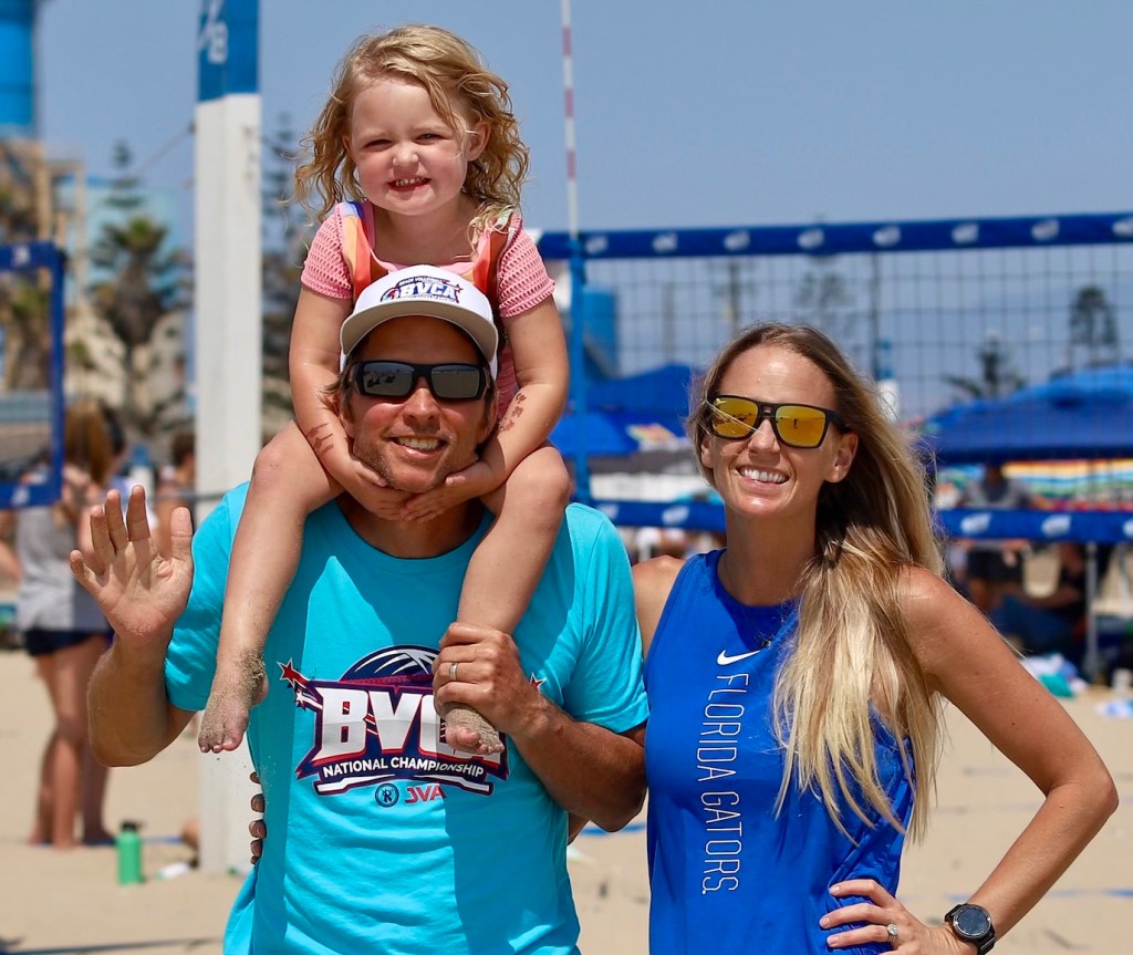 Welcome- we’re the Sadlers! After meeting at the AVCA (American Volleyball Coaches Association) Convention almost ten years ago, we continue to grow our “volleyball family.” We live in Ocean Beach, CA, with our daughter, Sunny, and three rescue dogs. Our love and connection to beach volleyball run deep, and “Mini Volley” has been our dream for a long time.
